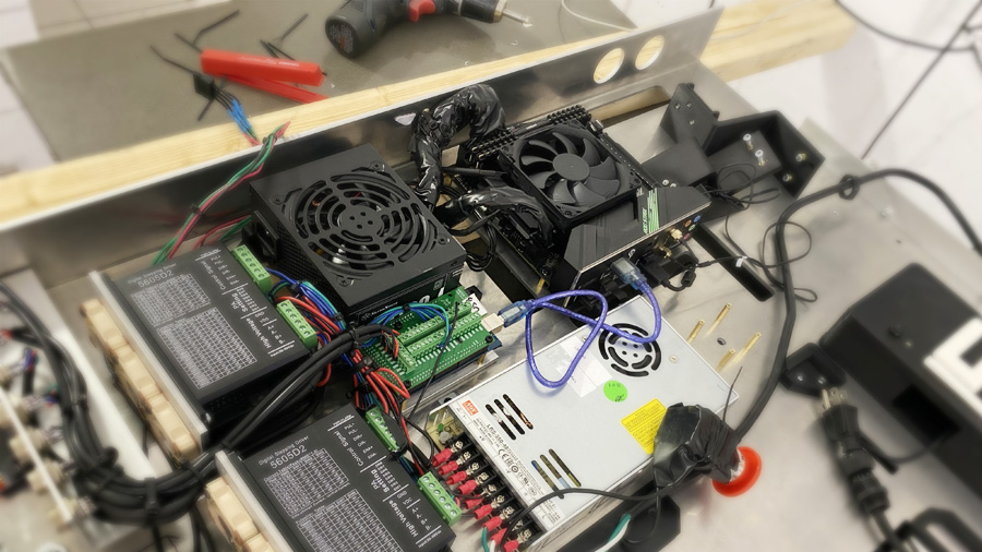 This CNC milling 3 - 4 axis has been a year-long project. Built it ground up, with fusion 360 for design and mechanics. Added an electronic jacking system along with onboard controls. motors and sensors controlled with Arduino.