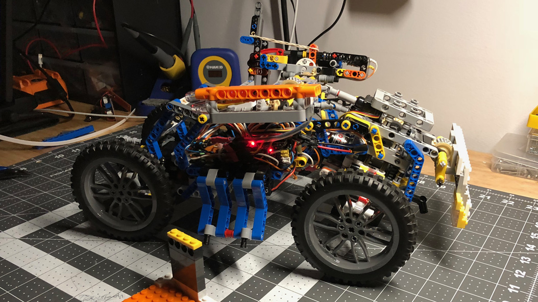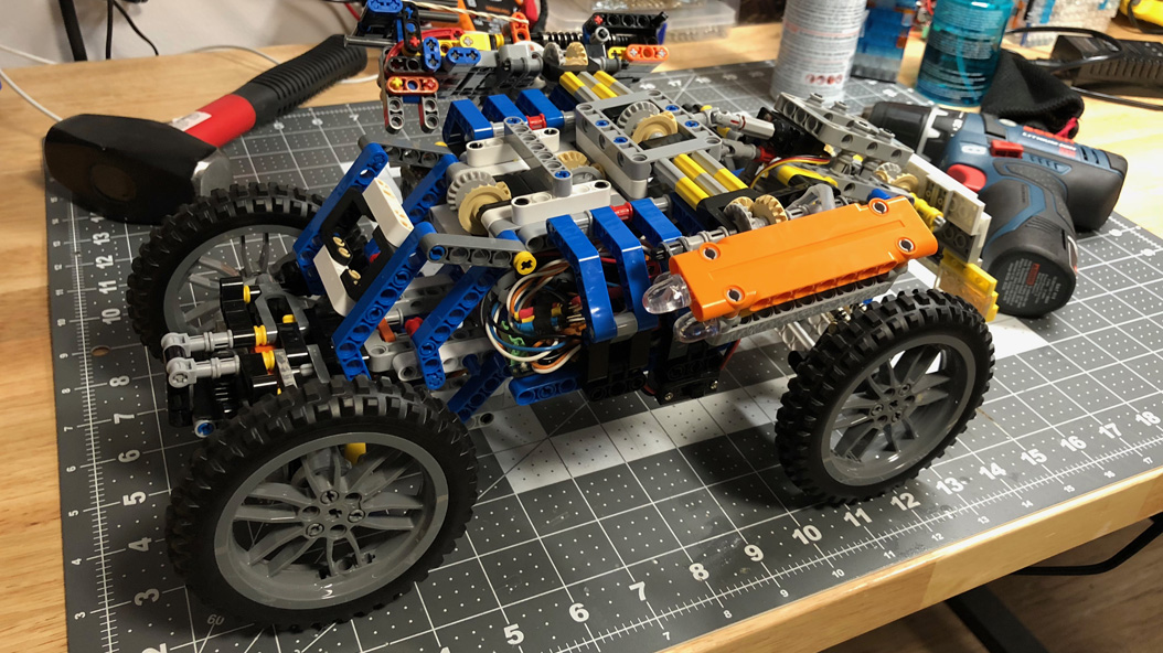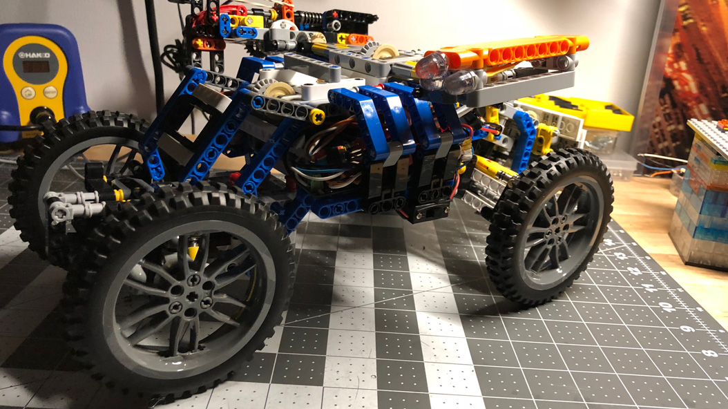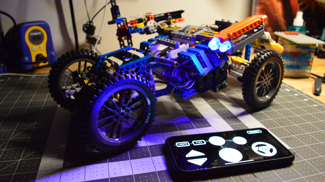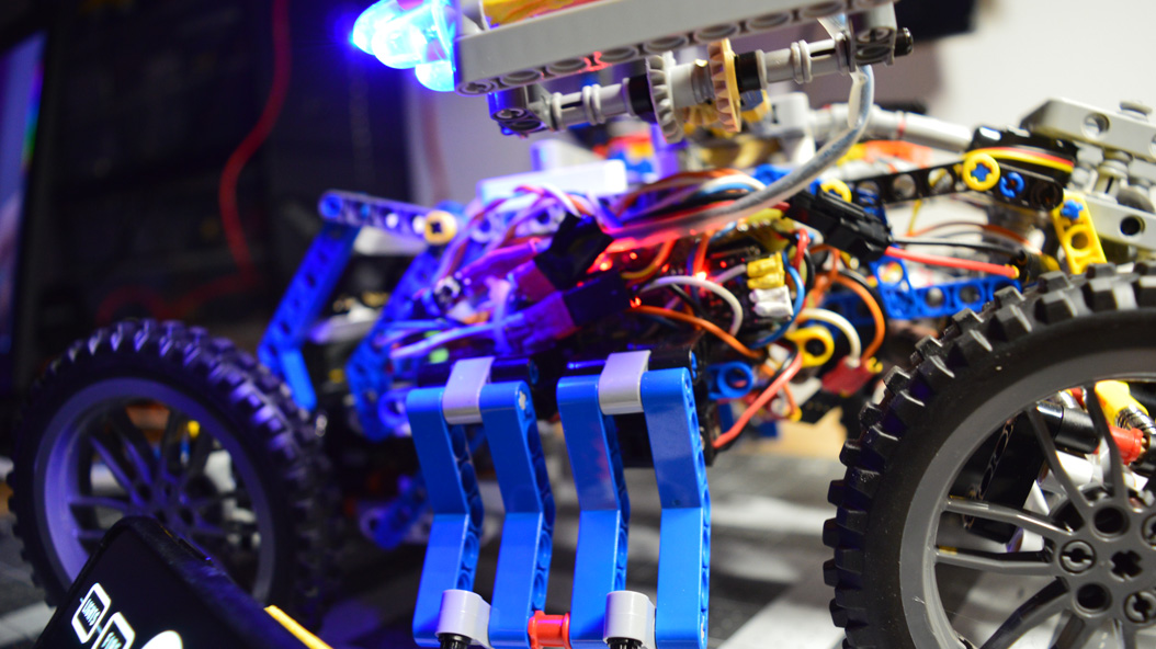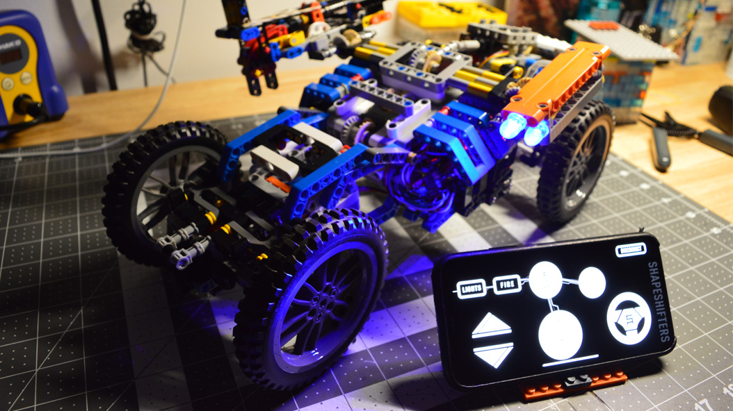 This experiment is an insight into creating a buildable modular toy that can transform (partially to fully). The build is using Lego blocks and some Mega Bloks. Also, it is loaded with three servos, two motors, an Arduino nano with a motor shield and Bluetooth chipset. The build can go 7km/hr on average and 10km/hr under stress. App built in unity. Programmed with C# and C++. Also, the graphics are designed in Photoshop and Illustrator.