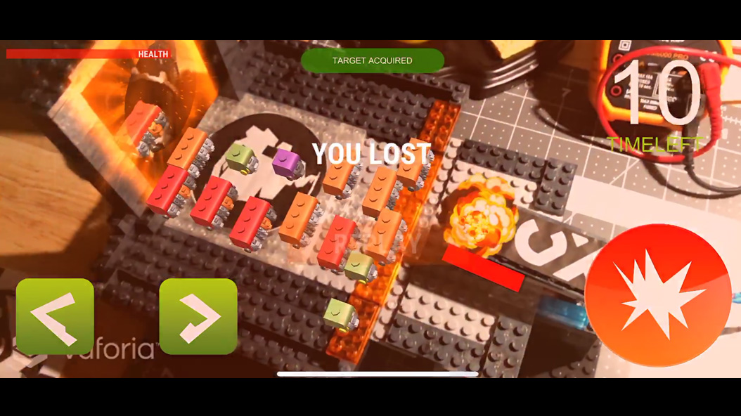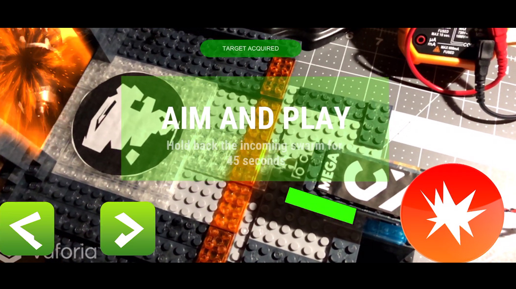The Turrent and the portal are built out of Mega Bloks (micro), onto which two markers are attached for AR detection. The larger marker is loading the portal VFX and the enemy combatants. And the smaller marker attached to the turrent is loading the VFX for the gun and a life bar. In order for the player to win the game kill all enemy combatants before they reach the orange blocks and hold them for 45 seconds. The hardware setup is simple enough. Using a motor, Bluetooth and an Arduino board controlled by the app. The app itself is build in Unity using vuforia for AR implementation. Programmed in C# and C++. This is a rudimentary portrayal of what the future of mixed reality apps will be.